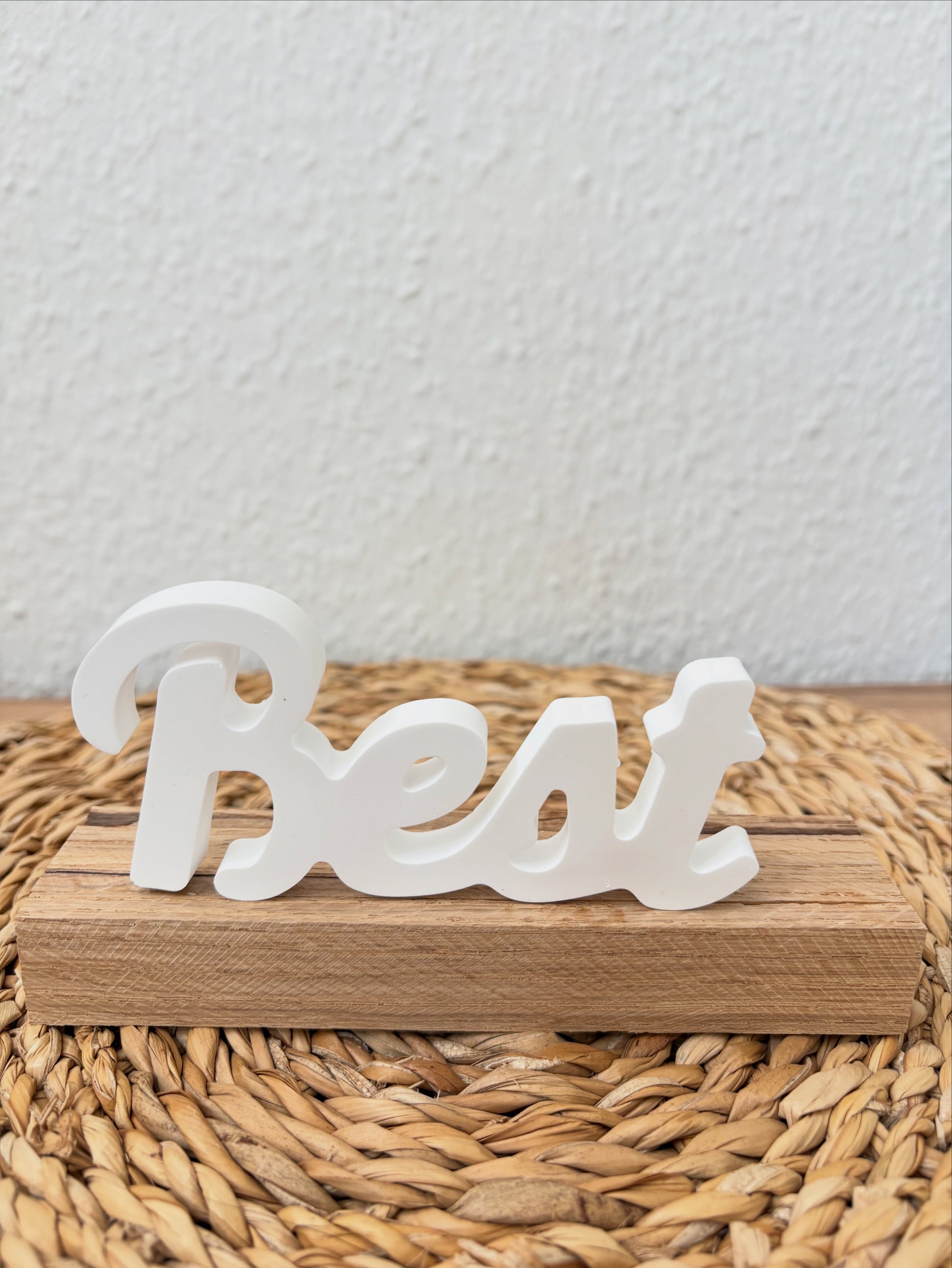 Best – ein Wort voller Stärke und Motivation! Diese stilvolle Dekofigur in Weiß auf einem Holzsockel ist ein echtes Highlight für Zuhause oder das Büro. Minimalistisch und modern erinnert sie daran, immer das Beste zu geben und das Beste im Leben zu sehen. Perfekt als Geschenkidee oder als inspirierendes Statement-Piece für deine Räume.