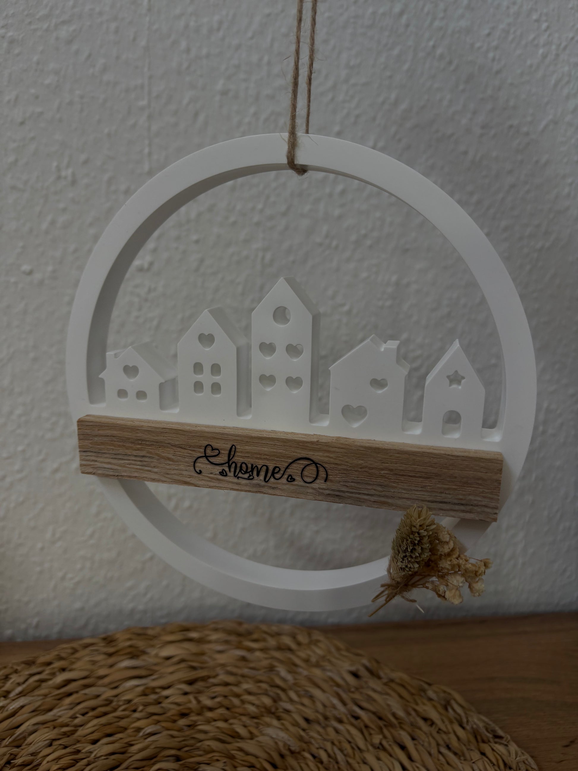 Dekorativer Holzkranz “Home” im modernen Landhausstil.