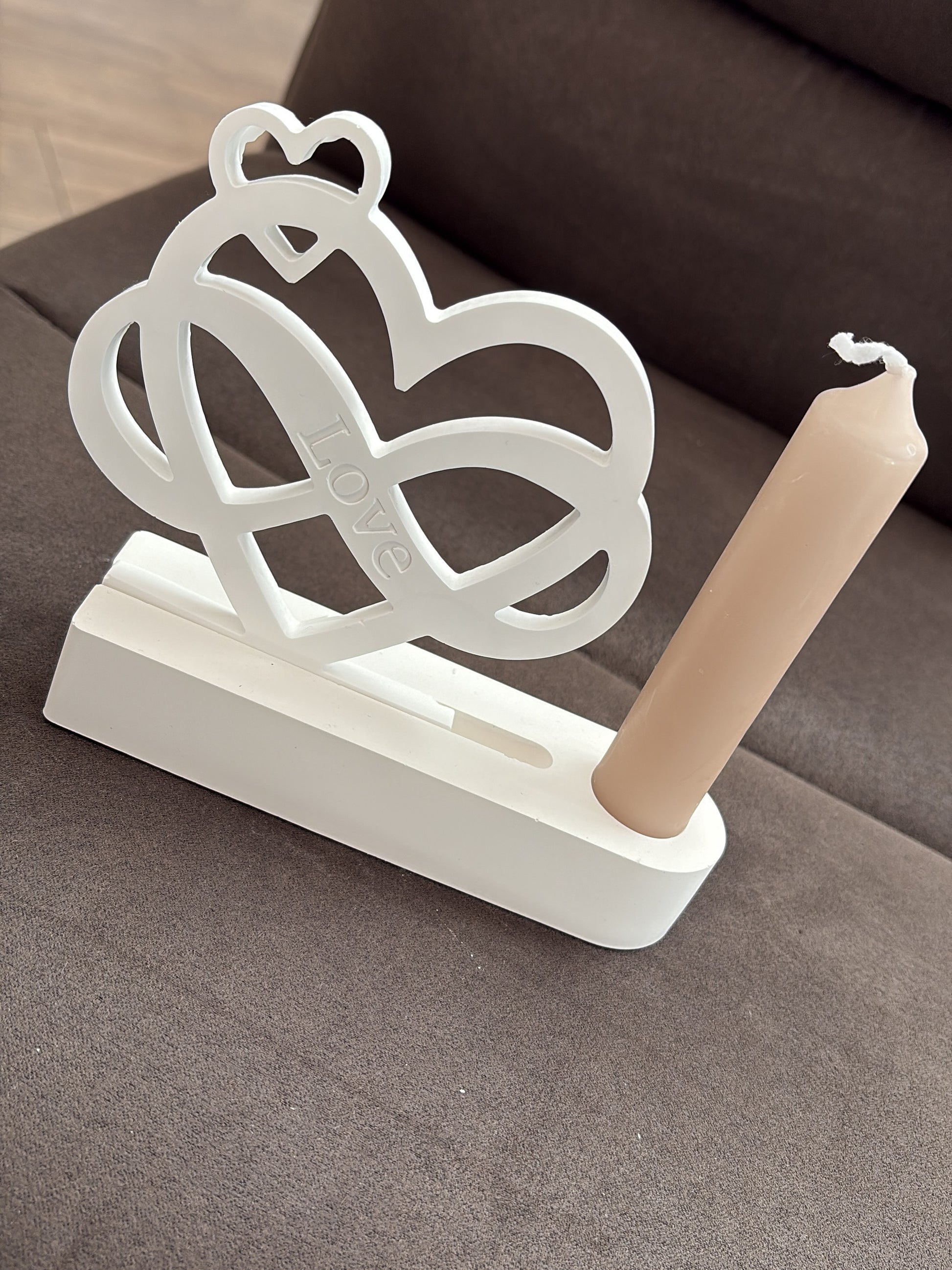 Dieses elegante Deko-Element mit Herz und Unendlichkeitssymbol bringt Romantik und Harmonie in dein Zuhause. Perfekt als Kerzenhalter für gemütliche Abende oder als besonderes Geschenk für deine Liebsten. 🤍