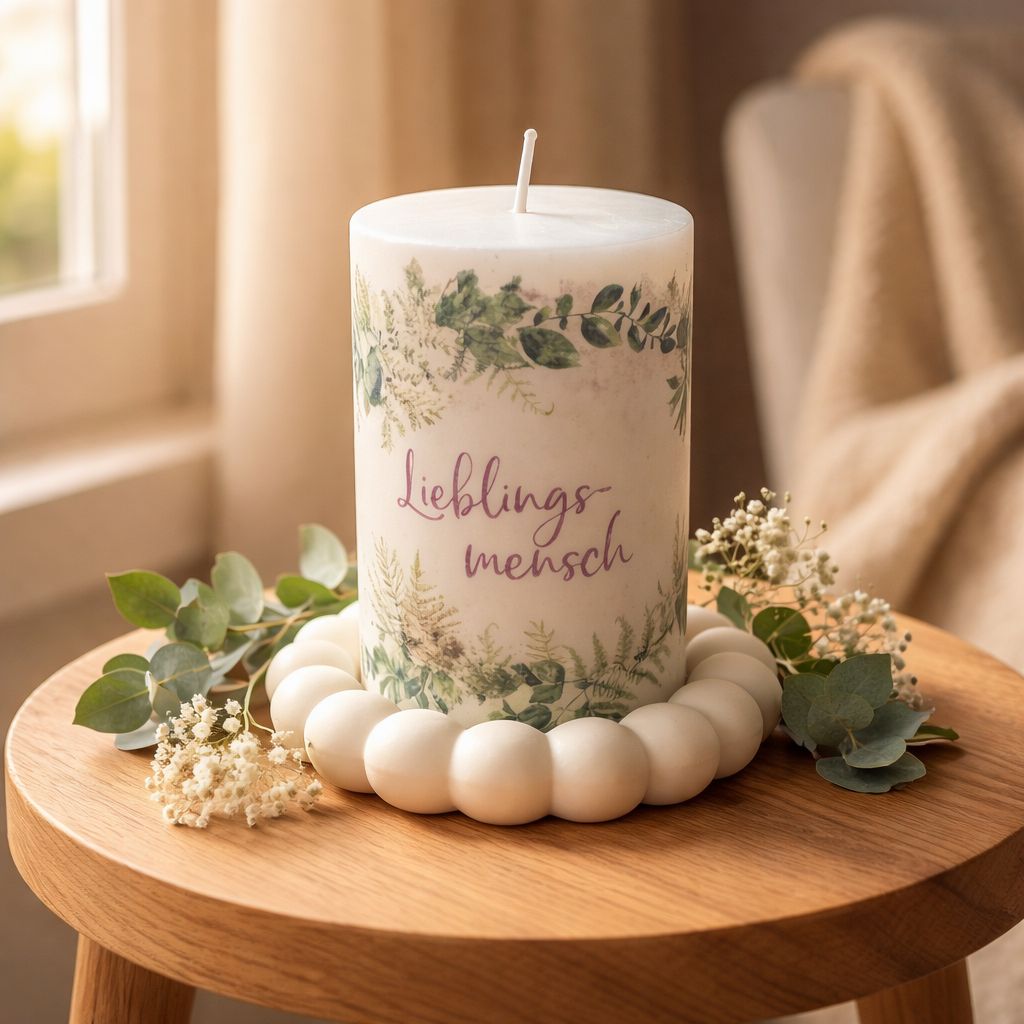 Diese stilvolle Kerze mit der Aufschrift „Lieblingsmensch“ vereint natürliche Eleganz mit emotionaler Bedeutung. Umgeben von zarten botanischen Illustrationen und arrangiert auf einem warmen Holztablett mit floralen Akzenten, wird sie zum dekorativen Highlight in jedem Raum. Ob als Geschenk für einen besonderen Menschen oder als liebevolle Botschaft an sich selbst – diese Kerze schafft eine Atmosphäre voller Wertschätzung, Geborgenheit und Stil.
