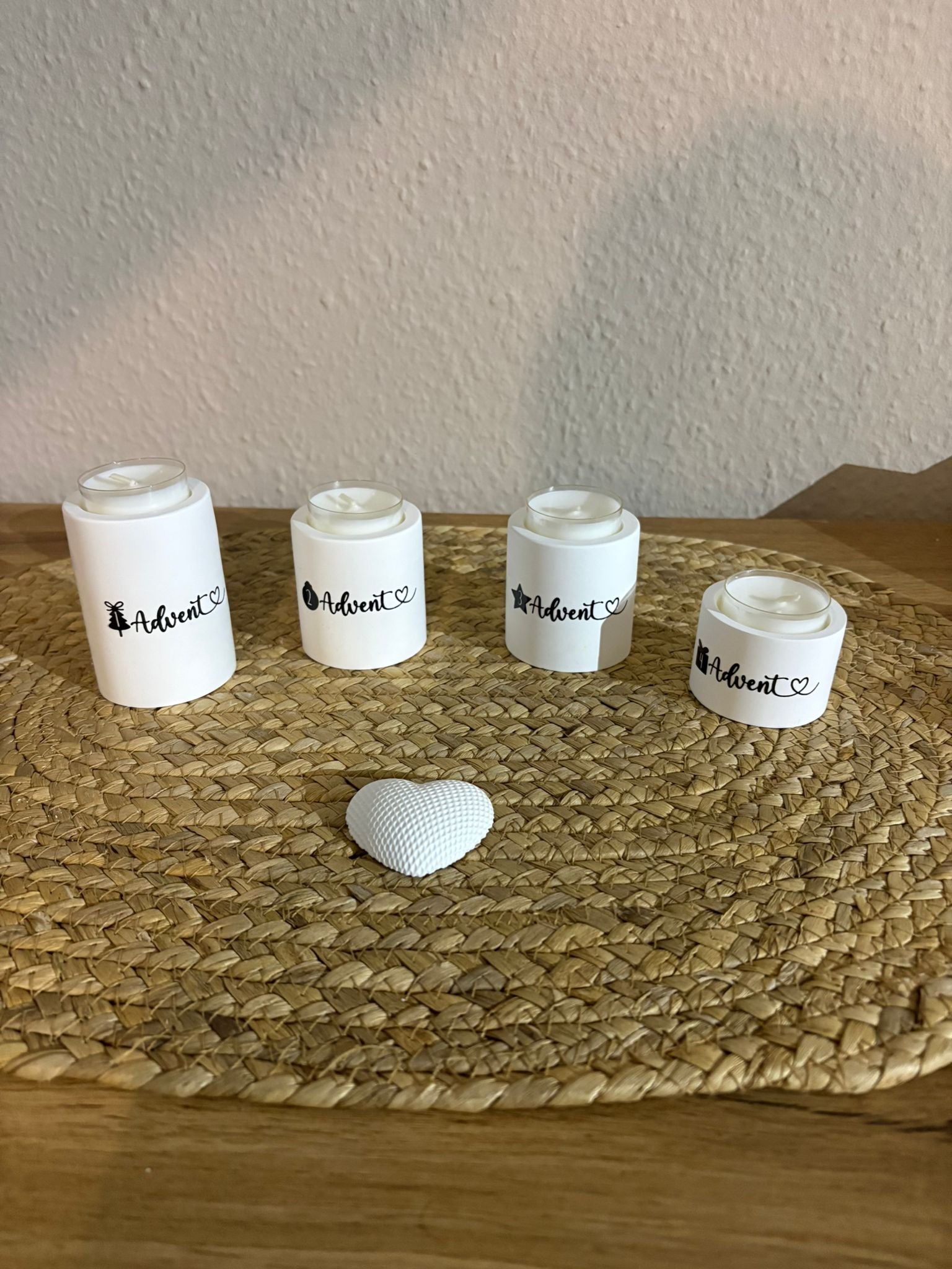 Dieser liebevolle Mini-Adventskranz erinnert daran, dass die Adventszeit vor allem eines bedeutet: Innehalten, genießen und sich auf das Wesentliche besinnen. Die vier schlichten, weißen Teelichthalter sind mit den Zahlen der Adventssonntage verziert und bringen eine ruhige, minimalistische Eleganz in dein Zuhause. Ergänzt wird das Set durch ein kleines Herzsymbol – als Zeichen von Wärme und Verbundenheit in der schönsten Zeit des Jahres. Perfekt für kleine Wohnräume, als Geschenk oder als besondere Tischdeko. Sanft, stilvoll und voller Adventszauber. ✨🕯❤️
