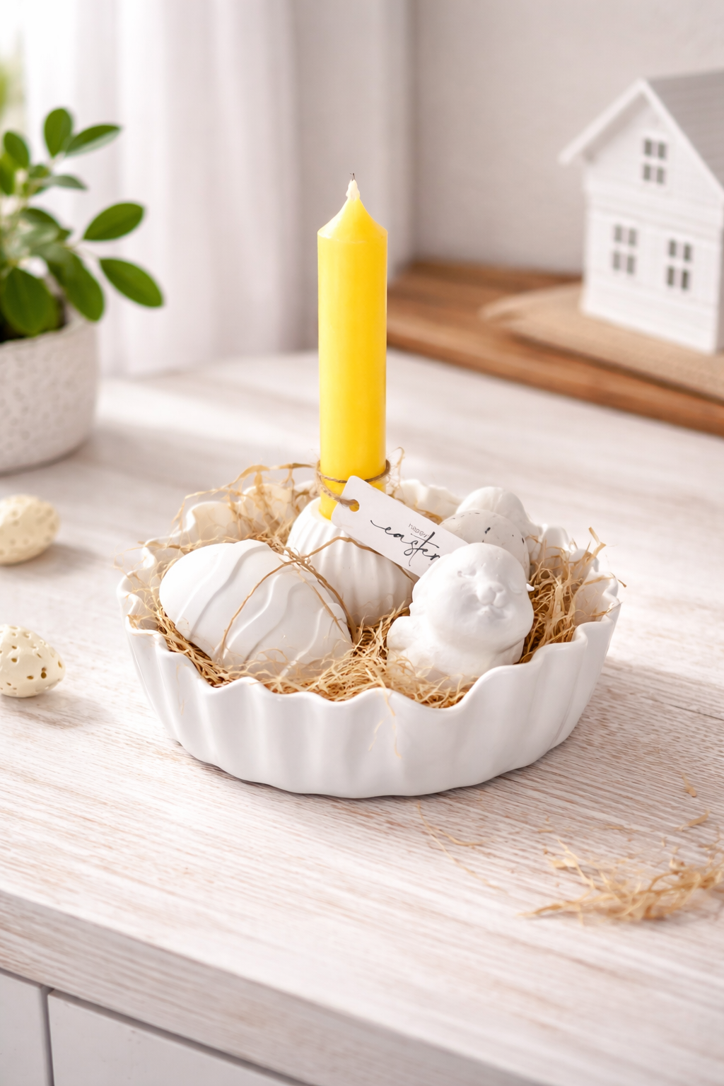 Sonniger Ostergruß – Handgefertigtes Kerzenarrangement mit Herz