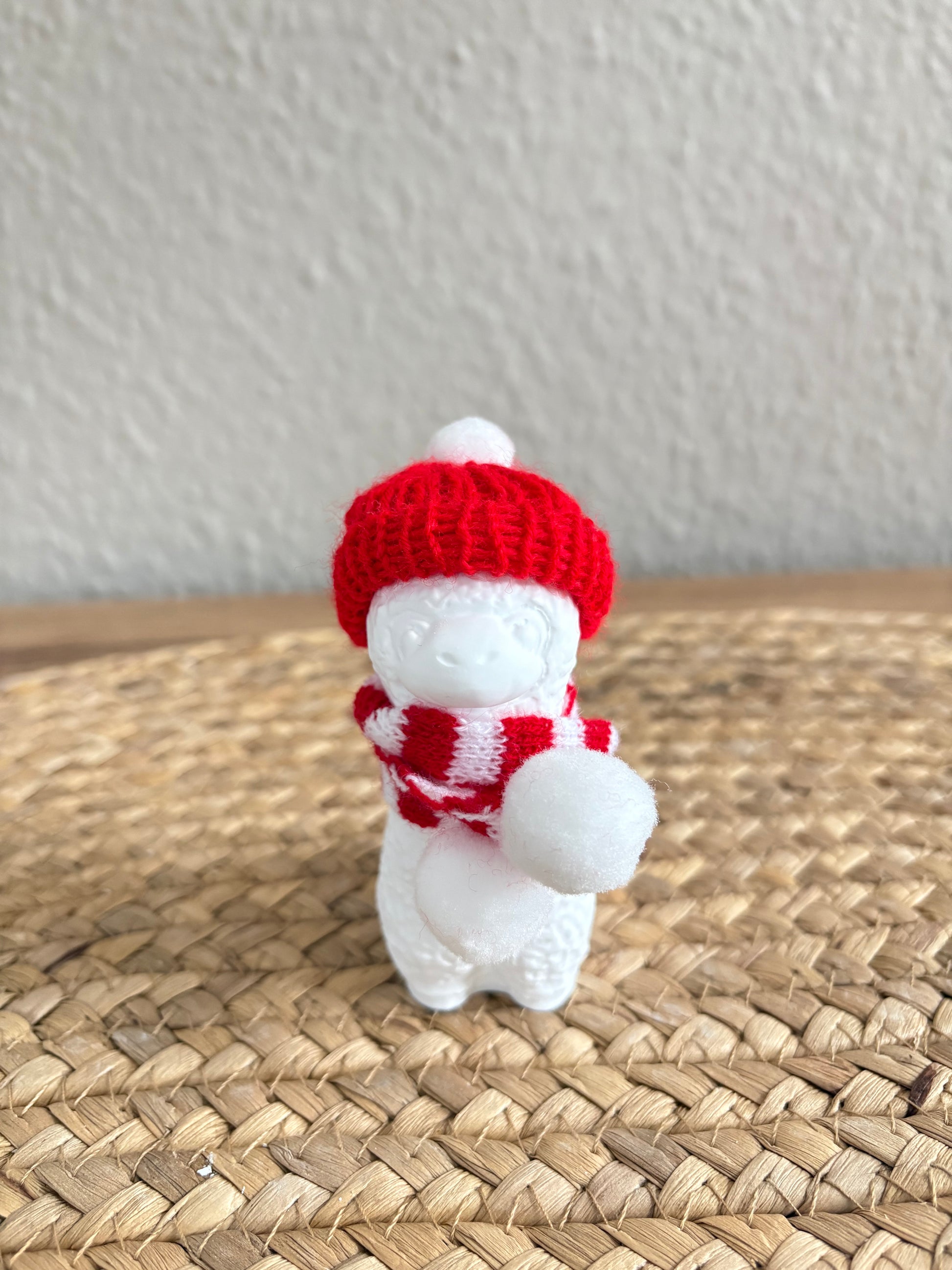 Dieses zuckersüße Alpaka zaubert sofort Winterstimmung und ein Lächeln ins Gesicht. Mit seiner roten Strickmütze, dem passenden Schal und einem kleinen Schneeball in der Hand wirkt es, als wäre es gerade mitten im fröhlichen Schneetreiben unterwegs. Die weiche, detaillierte Oberfläche verleiht der Figur einen besonders charmanten Charakter. Ein liebevolles Dekostück, das Wärme, Humor und winterliche Freude in jedes Zuhause bringt – perfekt für die Adventszeit oder als kleine Aufmerksamkeit.